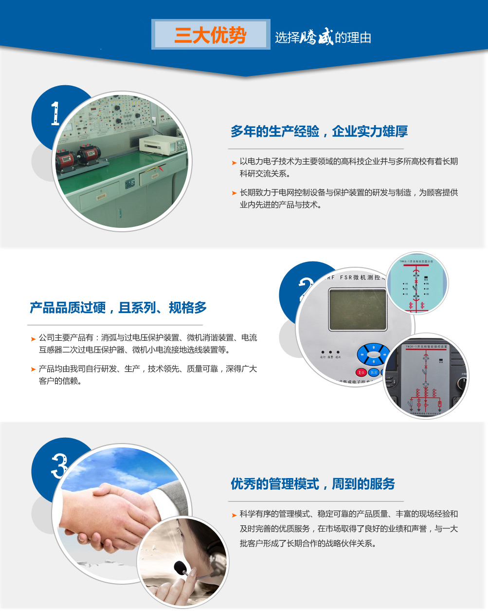 合肥騰威集成電子技術(shù)有限公司是一家以電力電子技術(shù)為主要領(lǐng)域的高科技企業(yè),坐落于國(guó)家科技創(chuàng)新型城市合肥,與多所高校有著長(zhǎng)期科研交流關(guān)系。 公司長(zhǎng)期致力于電網(wǎng)控制設(shè)備與保護(hù)裝置的研發(fā)與制造,為顧客提供業(yè)內(nèi)先進(jìn)的產(chǎn)品與技術(shù)。公司主要產(chǎn)品有:消弧與過(guò)電壓保護(hù)裝置、微機(jī)消諧裝置、電流互感器二次過(guò)電壓保護(hù)器、微機(jī)小電流接地選線裝置、微機(jī)電壓綜合保護(hù)裝置(抑制柜/聚優(yōu)柜控制器)、開關(guān)柜智能操控裝置、開關(guān)柜無(wú)線測(cè)溫裝置、電網(wǎng)運(yùn)行設(shè)備在線絕緣監(jiān)測(cè)裝置、可恢復(fù)式爆炸橋控制器、中性點(diǎn)接地電阻柜微機(jī)測(cè)控裝置等。以上產(chǎn)品均由我司自行研發(fā)、生產(chǎn),質(zhì)量可靠,深得廣大客戶的信賴。 公司憑借科學(xué)有序的管理模式、穩(wěn)定可靠的產(chǎn)品質(zhì)量、豐富的現(xiàn)場(chǎng)經(jīng)驗(yàn)和及時(shí)完善的服務(wù),在市場(chǎng)取得了良好的業(yè)績(jī)和聲譽(yù),與一大批客戶形成了長(zhǎng)期合作的戰(zhàn)略伙...更多>